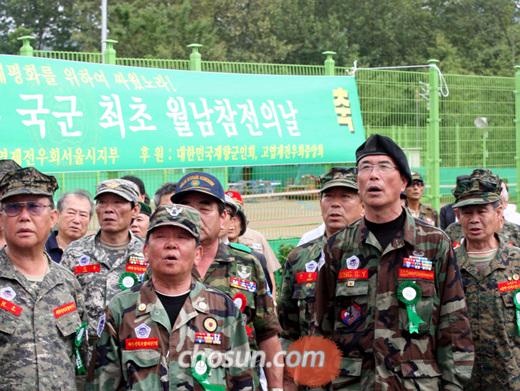 7¿ù 18ÀÏ ¼¿ï µ¿ÀÛ±¸ ÇöÃæ¿ø¿¡¼ ¿ù³²ÂüÀü¿ë»çµéÀ» À§ÇÑ Á¦ 45Áֳ⠿ù³²ÂüÀü ±â³ä ¹× ÂüÀüž Á¦¸·½ÄÀ» Çß´Ù. °Ç³ÁÖÀǺ¸°¡ ³»¸®´Â µî ³¯¾¾°¡ ¾ÈÁÁ¾ÒÁö¸¸, ÂüÀü¿ë»çµéÀÌ ±â³ä½Ä Áß ¾Ö±¹°¡¸¦ ºÒ·¶´Ù. /Á¶¼±ÀϺ¸