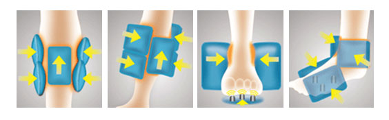 | Pelvis & Hip Massage - Air bags located along the outer hip and waist region apply a deep compression massage and apply a gentle twist of the hips to stretch tight muscles. This mode is designed to gently stretch and flex the muscles around the pelvis and the lower body.