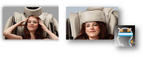 | Head Air Massage - The All New Osaki OS-7000 comes equipped with a bonus feature head massager. An airbag band is placed around the forehead area and then applies a mid to gentle squeeze imitating palms of a hand pressing down. |