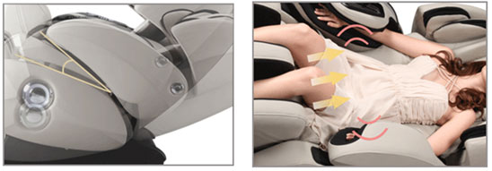 | The multiple air bags placed in the calf and foot part of the chair to deliver thorough and satisfying massage. |